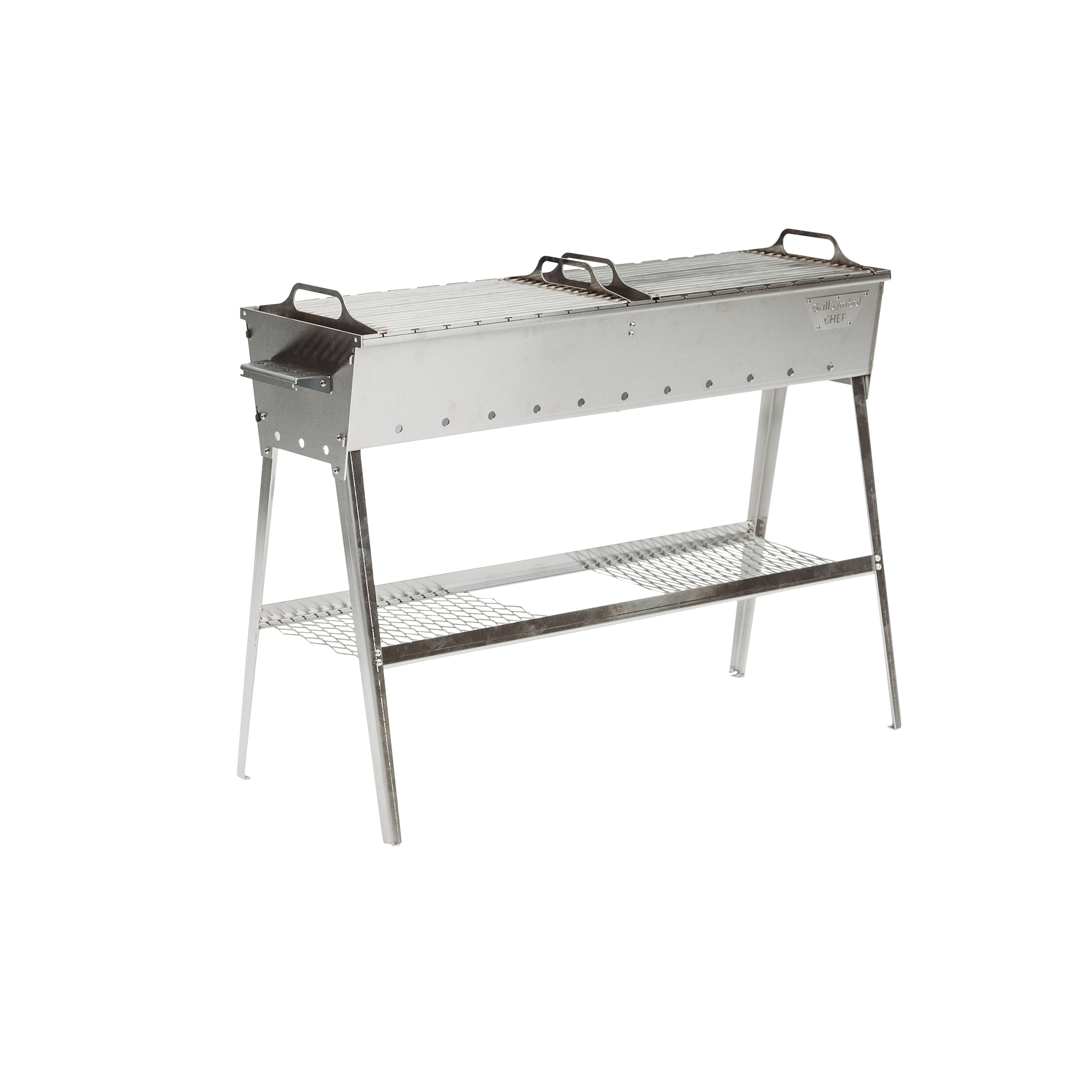 Naked Chef kolgrillen är en shashlik bad eller korvgrill typ kolgrill i toppklass, som är gjord av högkvalitativa och hållbara material. År 2024 har vi kommit ut med en ny modell som är mer funktionell än sin föregångare. För att göra grillen används materialet som på den gamla goda tiden, dvs inte sparats på material! Grillens kropp är tillverkad av ordentligt 3 mm rostfritt stål som håller temperaturen stabil under grillning. Samtidigt är grillens ben och mindre detaljer utformade på ett sådant sätt att de kan tillverkas av restmaterial från tillverkning av andra produkter. Vi vill hitta en medelväg i våra produktionsprocesser: hållbara material, minimalt produktionsspill och så liten miljöpåverkan som möjligt.