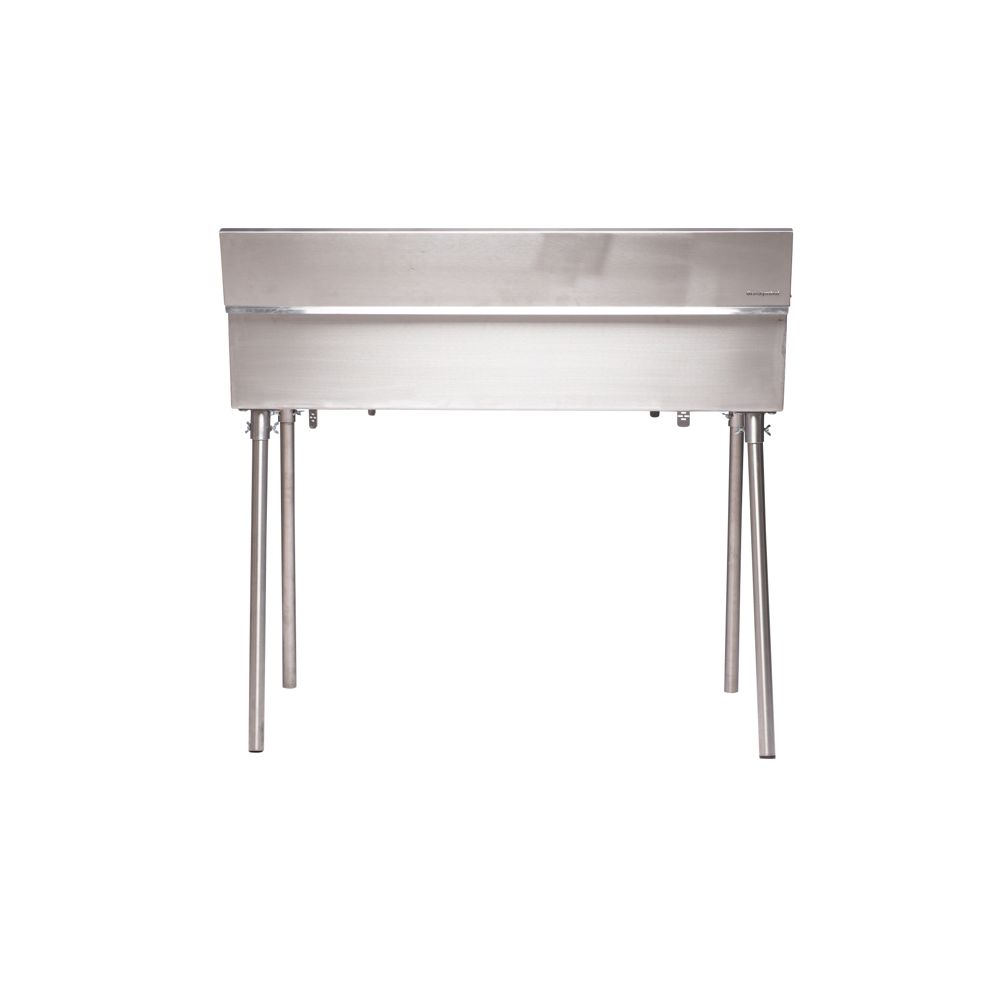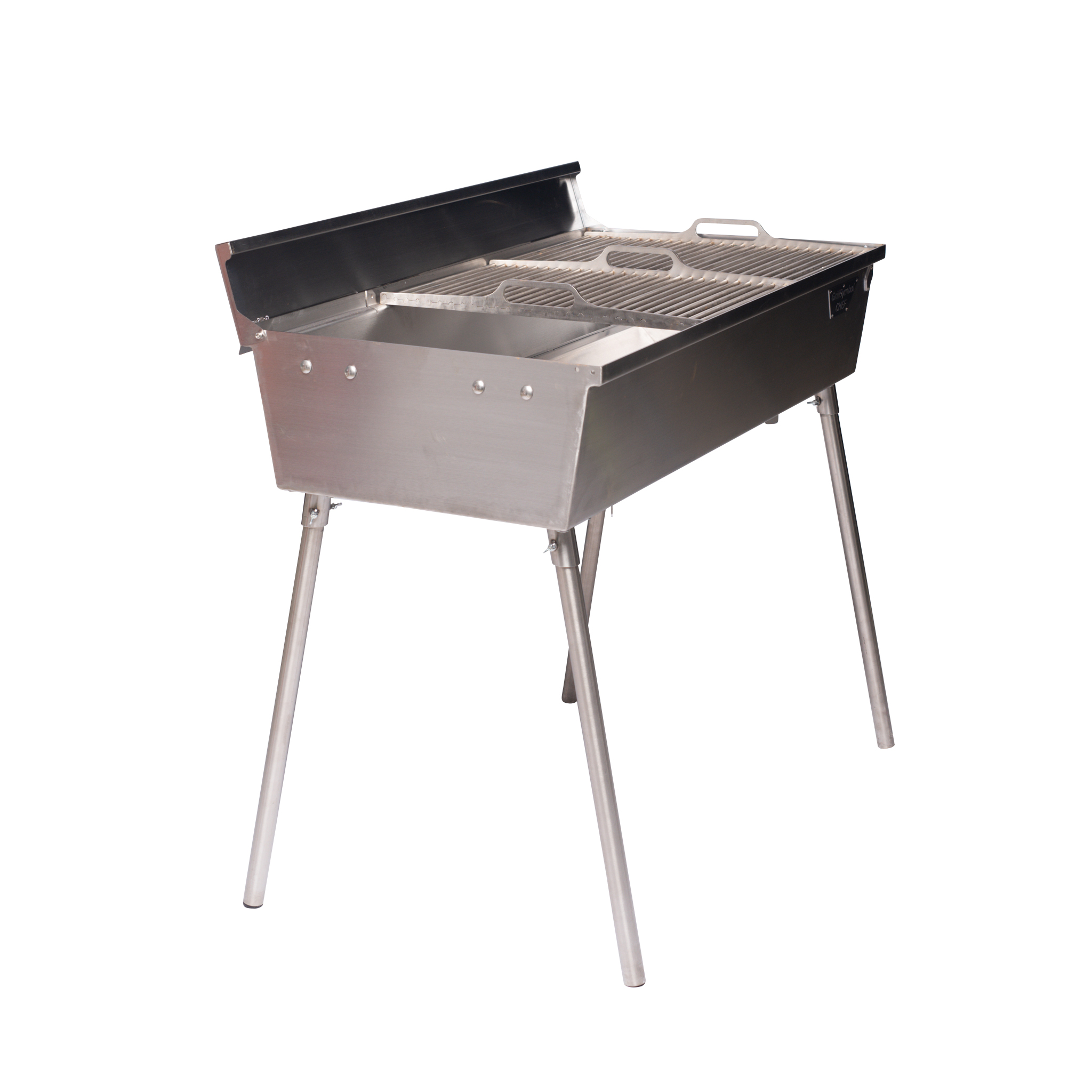 Chef XXL Silver är en stor, högproduktiv, pålitlig och stark kolgrill. Lätt att montera och demontera, tar liten plats och gör sitt arbete perfekt. Storleken på grillytan är 115 x 62 cm. Setet innehåller 2 grillar i rostfritt stål som täcker 2/3 av grillplatsen, ett kolberedningsbad och ett kolbad. Grillen har ett 15 cm brett vind- och stänkskydd, som kan användas som en kallare zon vid grillning i nedre läge.