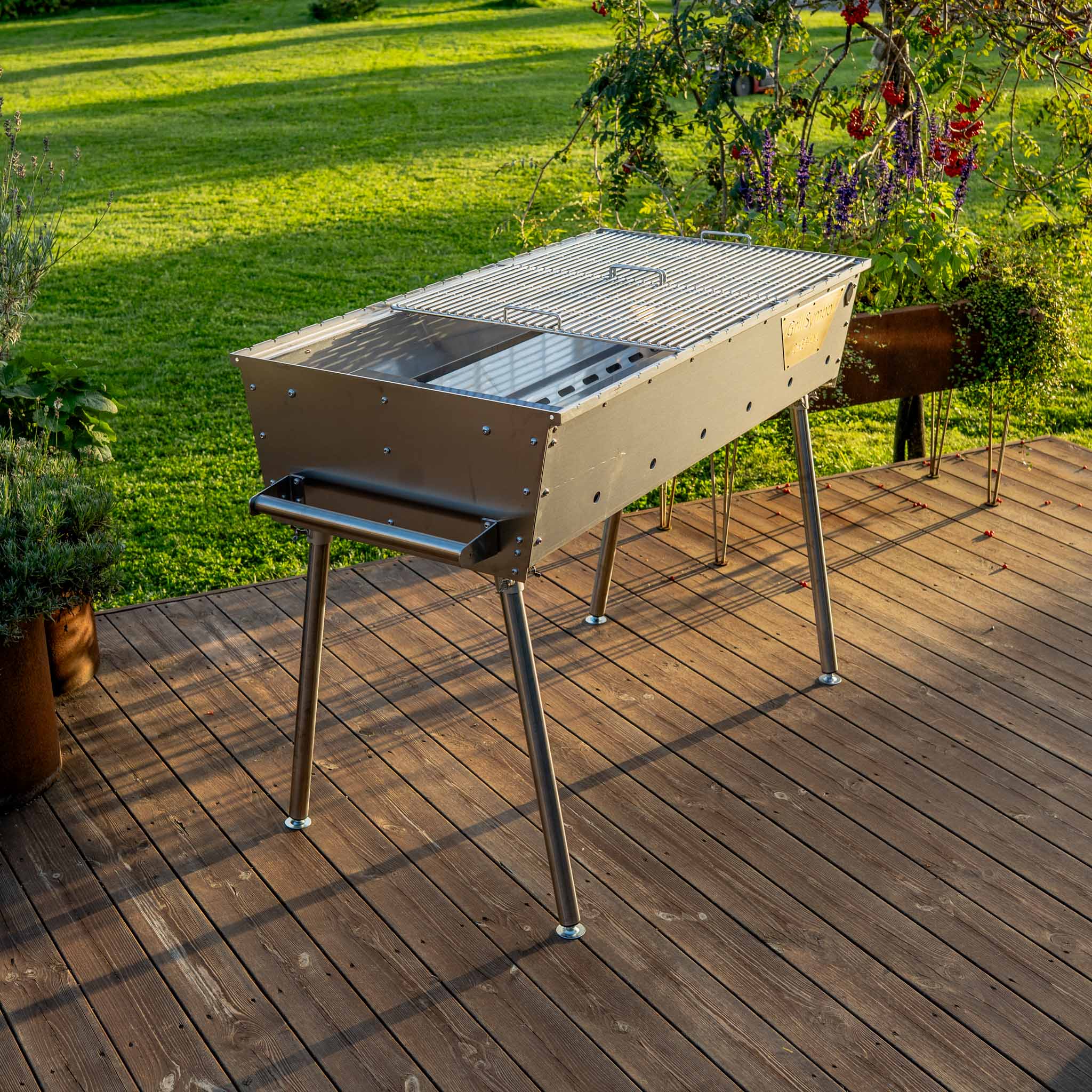 Grillkroppen är gjord av 3 mm rostfritt stål, vilket håller temperaturen stabil under grillning.